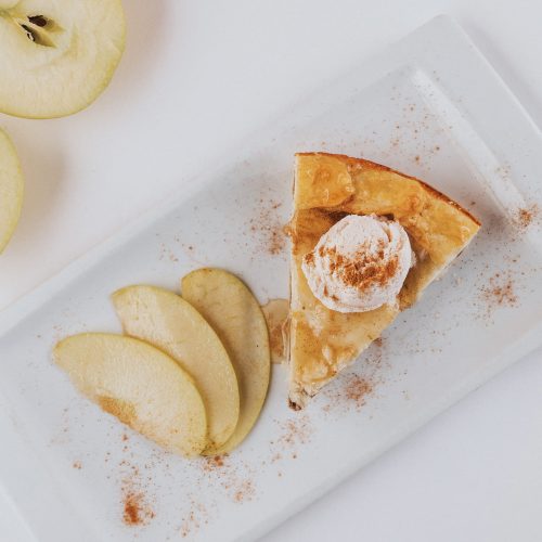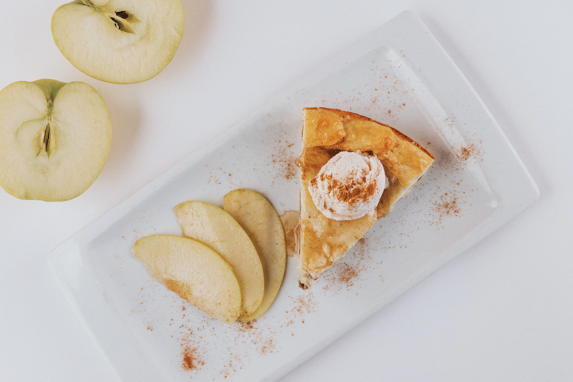 Tarta de manzana horneada al momento y servida con helado de vainilla